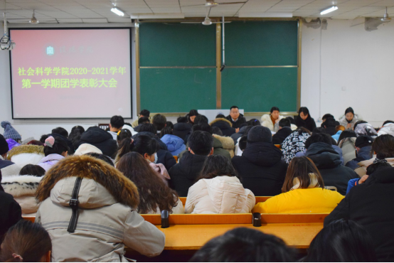 12月29日中午,社会科学学院2020—2021学年第一学期团学表彰会在社科楼112教室召开。党总支副书记胡志国、学工干事陈苗苗、全体辅导员、团总支学生会全体成员、新媒体工作室以及2019级、2020级主要班委参加此次会议,会议由陈苗苗主持。