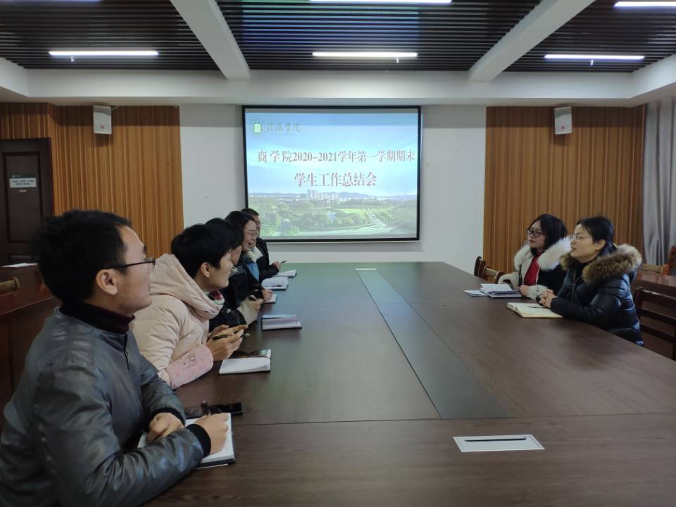 1月13日,商学院在综合楼715召开2020-2021学年第一学期学生工作总结会。党总支书记胡秀云、学工秘书董高丽及全体辅导员参加此次会议,会议由董高丽主持。