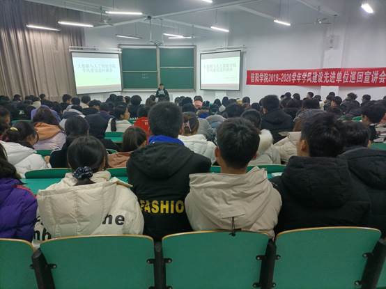 学校积极组织2019年度学风建设先进单位获奖代表开展学院巡回宣讲,各学院从上一年度学风建设先进单位中遴选骨干力量组建先进经验宣讲团,举办学风建设先进集体、先进班级、先进宿舍巡回宣讲会,详细介绍学生学习管理、科学研究、社会活动等方面的具体举措,充分展示学风建设取得的突出成果和学子奋发向上的精神风貌,以榜样力量激励信院学子奋勇拼搏、砥砺前行。