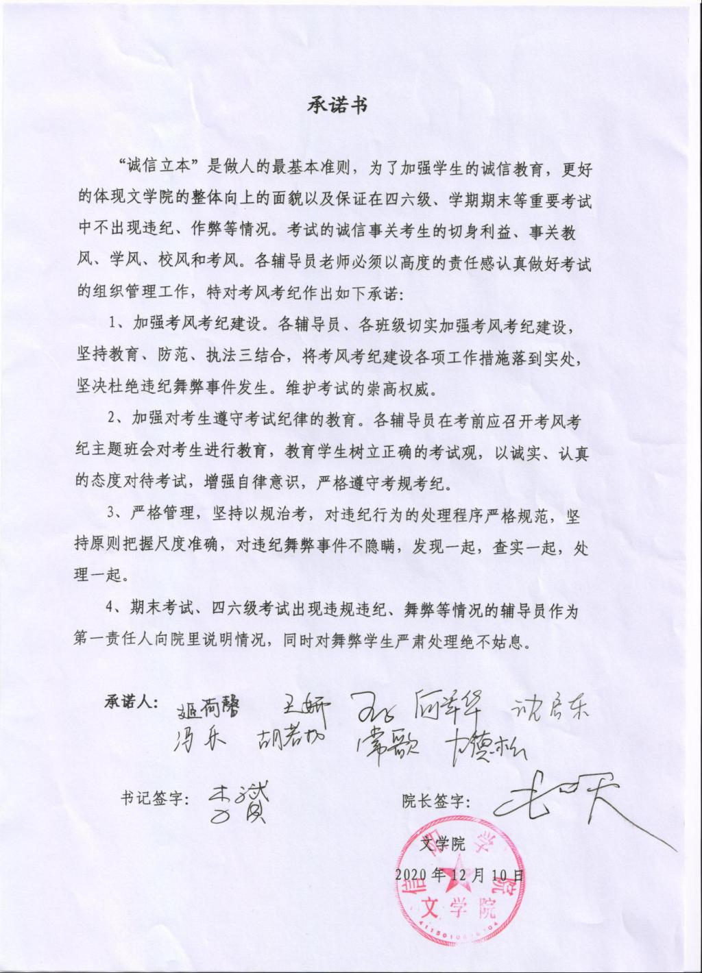 各学院组织开展了形式多样、内容丰富的诚信应考主题教育活动,商学院举办了“诚信应考教育大会”,大数据与人工智能学院召开“诚信应考主题班会”,社会科学学院和教育学院组织学生“签署诚信考试承诺书”等活动,有效强化了学生的纪律观念和规则意识,引导学生远离作弊,诚信考试。
