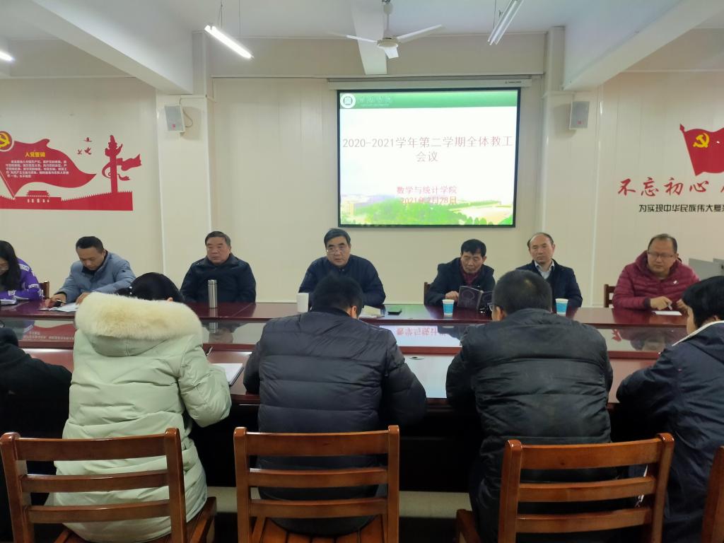 2月28日下午,数学与统计学院在数计楼407会议室召开2020-2021学年第二学期全体教工会议。