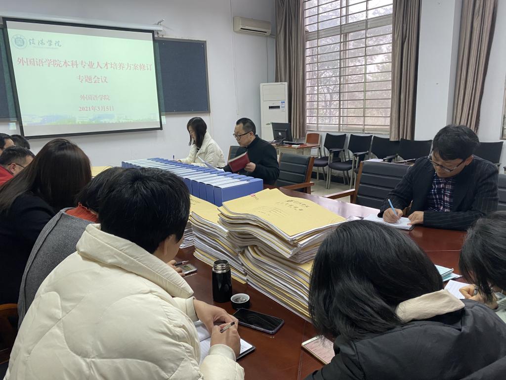 为进一步深化教育教学改革,创新人才培养模式,提高人才培养质量,3月5日上午,外国语学院组织召开了本科专业人才培养方案修订专题会议。外国语学院院长罗德喜、副院长李静、全体教研室主任和学院教学管理人员参加了会议。会议由罗德喜主持。