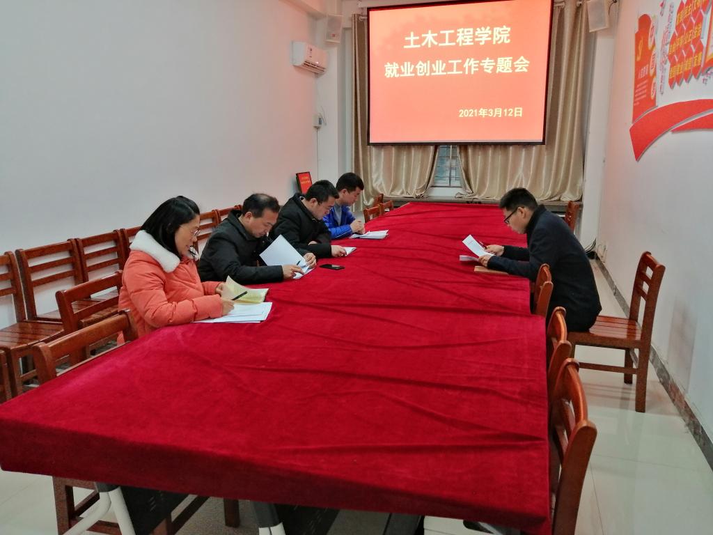 3月12日下午,土木工程学院在理工楼112会议室召开了新学期就业创业工作专题会议。学院党总支书记郭二军、学工干事徐超及全体辅导员参加了此次会议。会议由徐超主持。