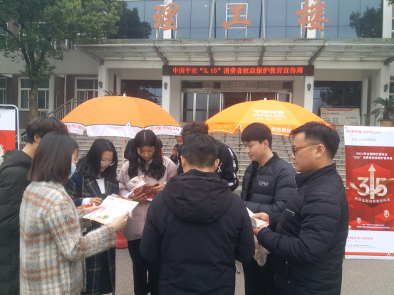 活动于下午3:00正式开始,中国平安财险信阳分公司工作人员耐心讲解关于“3.15消费者权益保护”的活动背景及相关材料,工作人员通过派发宣传折页以及现场为校园师生宣传防范网络诈骗、校园贷款、消费者权益保护等金融知识,深入浅出讲解防诈骗案例、个人信息泄露风险和网络资金交易安全等问题。校园是学生梦开始的地方,美好年华的大学生应做到认清非法的校园贷,远离非法金融活动。