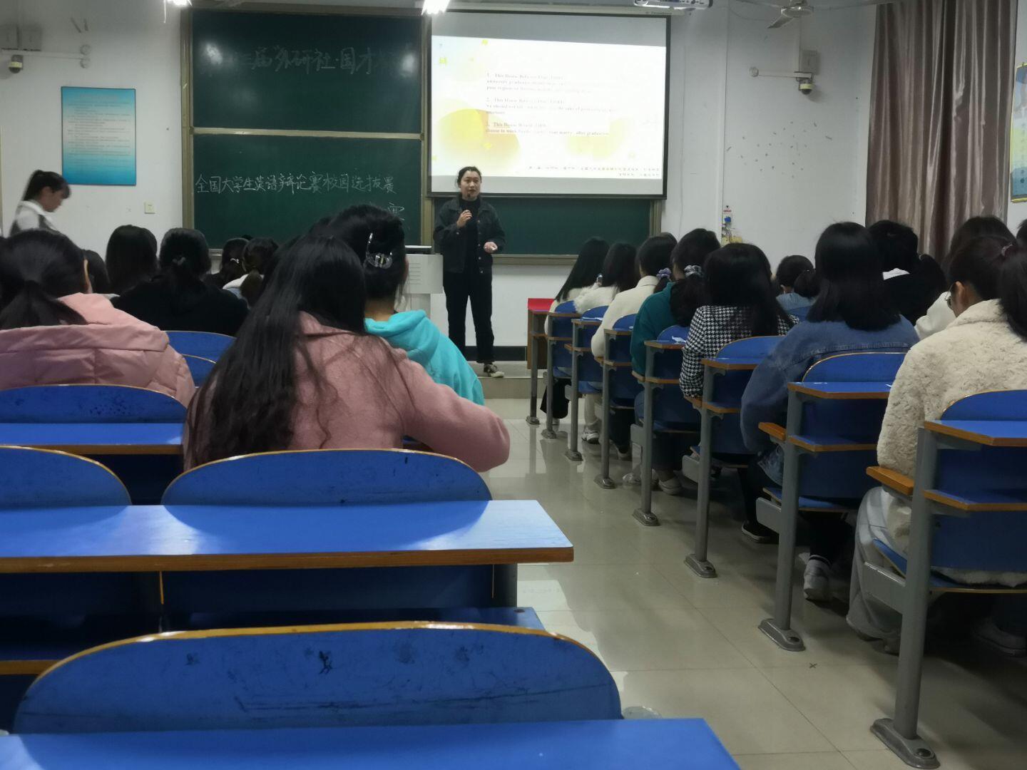 为引导高校广大青年学生积极践行社会主义核心价值观,加强校园多语文化建设,帮助学生开拓国际视野、强化学习意识,提升英语表达和思辨能力,3月17日,信阳学院外国语学院在外语楼306教室举行第二十三届全国“外研社·国才杯”全国大学生英语辩论赛校园选拔赛初赛。本次比赛的参赛选手为2018级至2020级英语专业学生,并由往届优秀学生代表宋昊冉、周文龙、韩岢、李金娣担任本次比赛的评委。