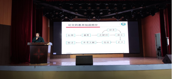 张秋平博士通过论文结构、摘要撰写、拟定关键词、结论撰写、参考文献、论文撰写六个部分,细致的讲述了毕业论文的写作方法和写作的具体要求。通过论文的基本组成部分:标题、摘要、关键词、目录、前言、正文、结论、参考文献、附录,论文的主体部分:引论、本论、结论,常见的论文类型:实验研究型论文、历史研究型论文、理论研究型论文、文献综述型论文、调查研究型论文以及实践应用型论文,摘要的要求、内容以及注意事项,论文其他组成部分的内容要求和注意事项,让全体学生再一次明晰了毕业论文的写作重点和注意事项。讲座的最后,张秋平博士建议同学们写论文从模仿开始,提醒毕业生们可以参照别人的论文模板让自己的论文精益求精,但严禁抄袭、原文照搬。