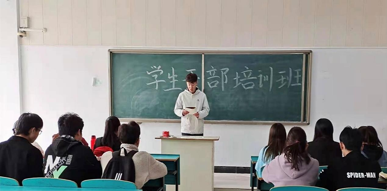 学生干部是教师与学生之间的重要桥梁,是学生工作顺利开展的得力助手,优秀的班集体必须要有一支优秀的学生干部队伍。为提升学院学生干部的综合素质,3月23日,数学与统计学院在数计楼408教室开展了第一期学生干部培训班。本次课程主题为“学生干部的责任与担当”,18级优秀学生干部马铭洋、张紫钰和各班班长、团支书参加了此次培训。