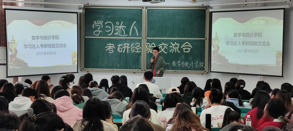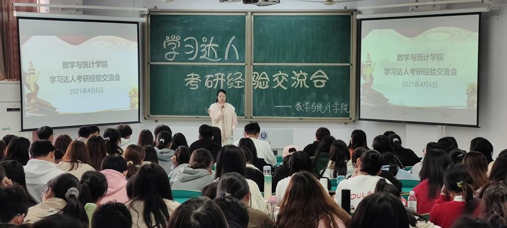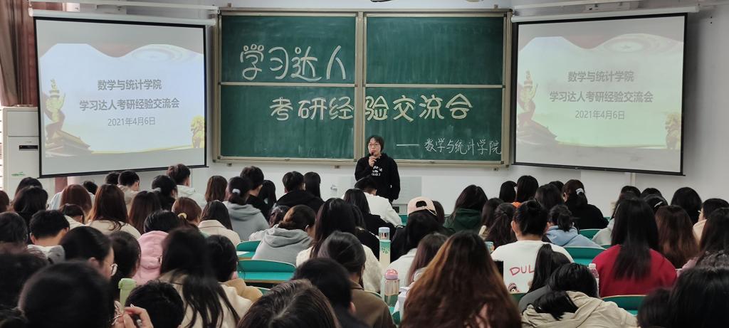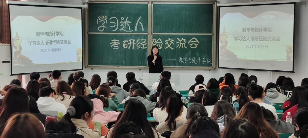 4月6日下午,数学与统计学院在数计楼106教室成功举办2020年学习达人考研经验交流会。学院学工干事田媛、全体辅导员、2021年考取研究生的2017级学生代表及2018级全体学生参加了本次交流会。