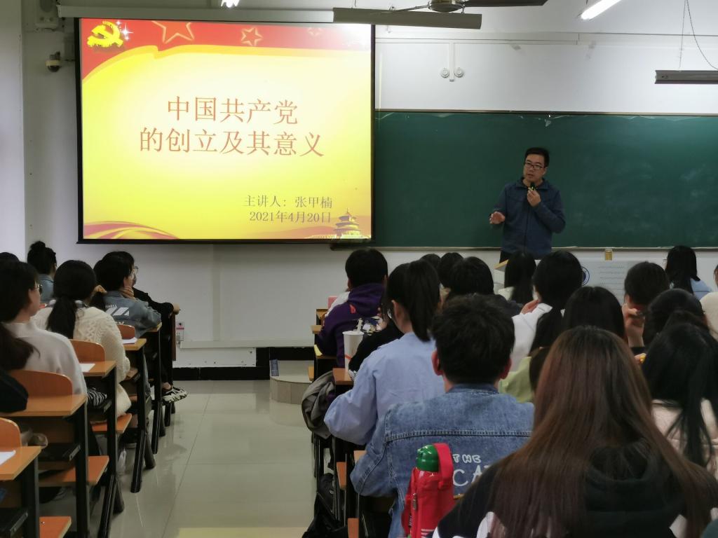 为进一步增强发展对象的党性修养,不断增强同学们爱党、爱国、爱社会主义的使命担当。4月20日下午,教育学院党总支书记张甲楠在社科楼315为发展对象们做了题为“中国共产党的创立及其意义”的专题党课。