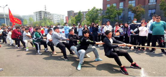 一根绳索,展示着各组队员的智慧和力量。拔河比赛现场,气氛热烈高涨,助威声此起彼伏。同学们共同努力,尽情地张扬个性,为学院、为班级争光争荣誉,映衬出了数学与统计学院学子的风采。