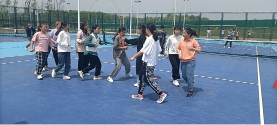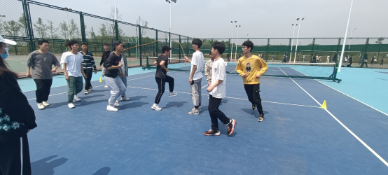 一根跳绳,尽显默契的团结合作。数学与统计学院参赛选手在举手、投足、跳跃之间,向我们昭示着无限的青春与活力,在这轻松愉悦的氛围中让我们感受到了合作的趣味性和他们默契。