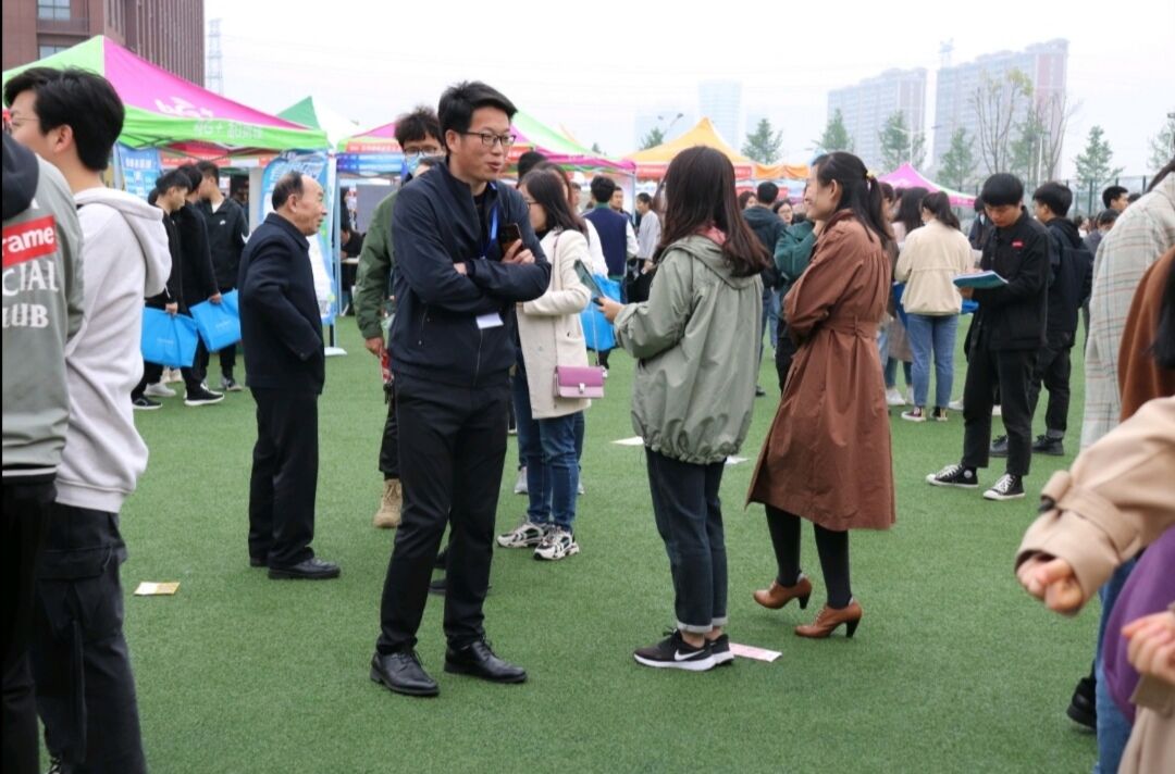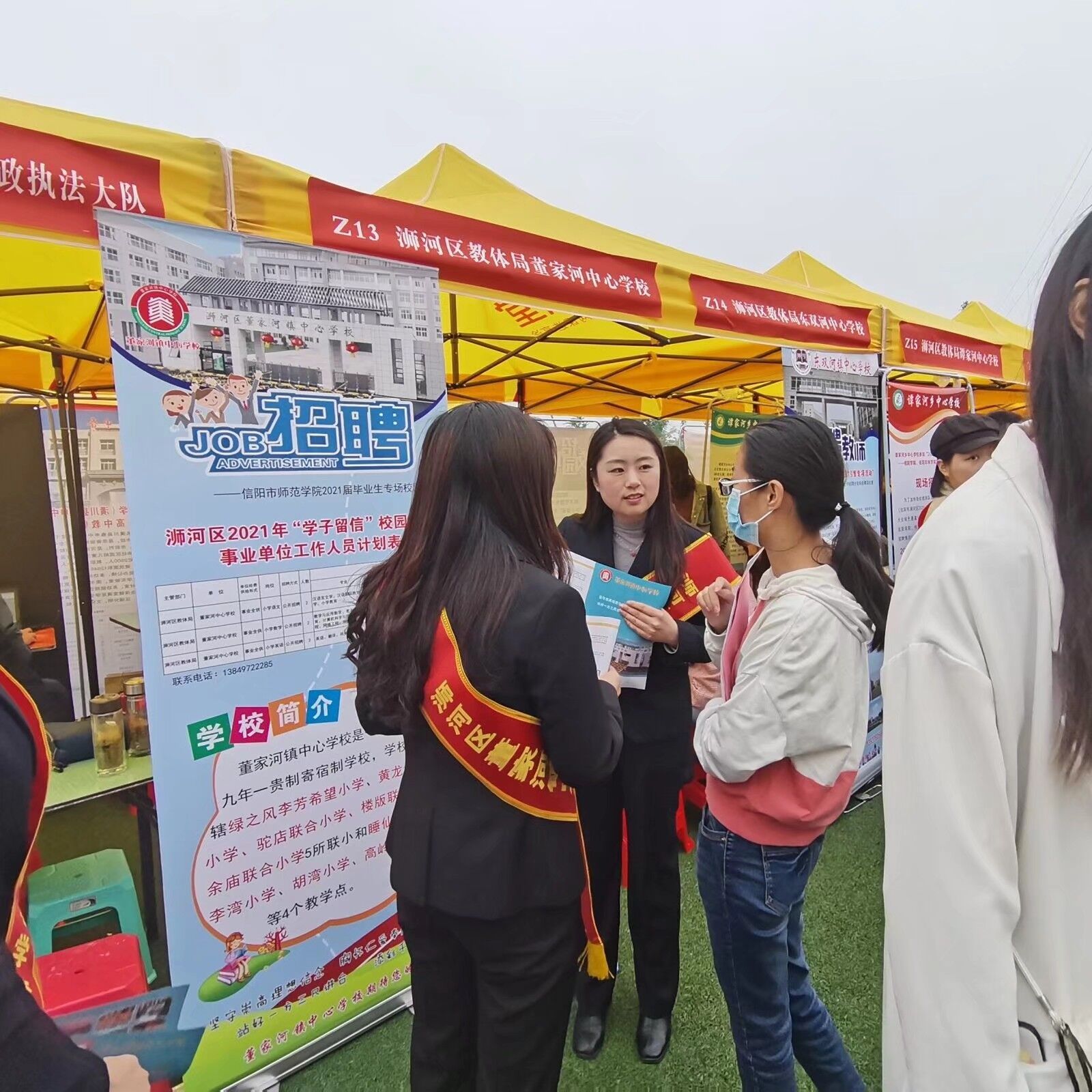 4月24日上午10点,由信阳学院、信阳市人力资源和社会保障局主办、信阳学院招生就业处和文学院承办的2021年毕业生春季就业双选会在西区操场举行。文学院党总支书记李赟,学工秘书徐远东亲临会场指挥并与用人单位和应聘毕业生交流。