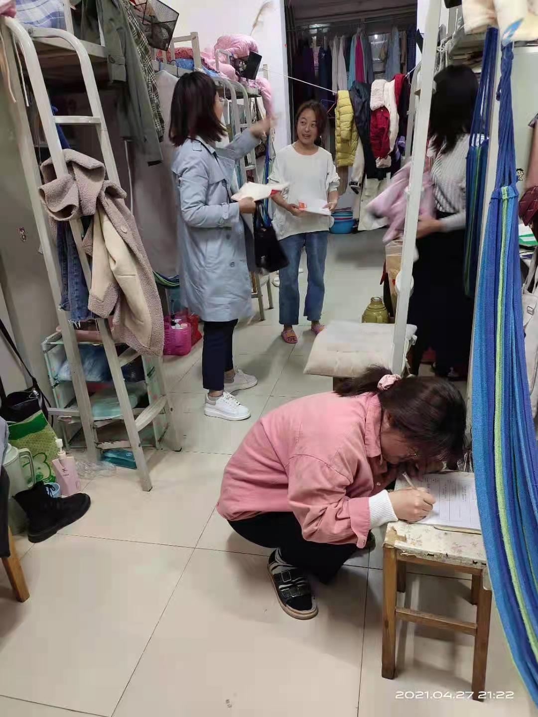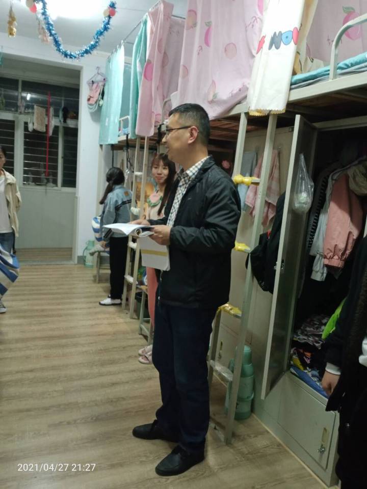 为进一步加强春夏季安全教育和管理工作,4月27日晚,外国语学院党总支副书记程娇炎带领全体辅导员深入学生宿舍,对宿舍进行了文明、卫生、安全大检查。