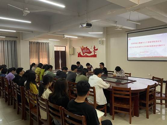 为深入学习贯彻习近平总书记的重要讲话精神,4月29日下午,大数据与人工智能学院在数计楼407会议室召开了“习近平总书记在清华大学考察时的重要讲话”专题学习会,大数据与人工智能学院全体师生党员参加了此次学习会,会议由党总支副书记毛凤翔主持。