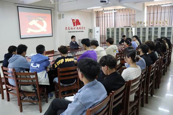 李进首先带领大家认真学习党章,详细阐述了党章的基本概念、基本结构、基本内容,明确党章是立党治党管党的总章程,对十八大对党章的修改进行了深入细致的解读,指出同学们要认清党的性质,加强党性训练,坚持以党员标准严格要求自己,增强为民观念,做一名合格党员。随后,李老师解读了《关于新形势下党内政治生活的若干准则》《党内监督条例》《廉洁自律准则》《纪律处分条例》和习近平关于全面从严治党的重要论述等文件精神,结合部分典型教育案例进行了具体的分析。他要求同学们端正入党动机,不是为个人利益而选择入党,而是要对照党章规范自身的思想和行动,沉下身子踏实苦干,在奋斗中实现自己的人生价值。最后,同学们结合自身实际进行了分享和探讨,并纷纷表示:要从思想上认识党、跟着党,做思想上的先行者、学习中的佼佼者、工作中的先进者,为班级进步、学院发展贡献出自己的力量。