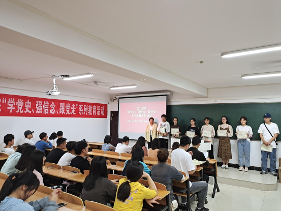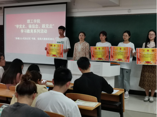 春暖花开之时,党史翰墨正飞扬。为庆祝中国共产党成立100周年,扎实开展好党史学习教育,5月8日下午,理工学院在理工楼509教室举办了“学党史、强信念、跟党走”书法绘画大赛颁奖典礼。党总支副书记张红梅书记、学工秘书杨晓杰老师及全体辅导员教师出席颁奖仪式。