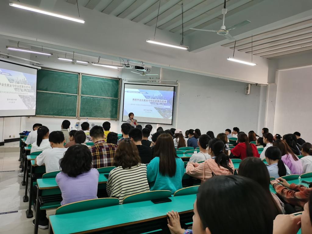 为帮助学生全面了解毕业生就业与创业政策,落实就业创业工作,数学与统计学院于5月11日在数计楼208开展了“高校毕业生就业与创业政策的思考”讲座。参与人员有学工干事田媛、辅导员胡超和大四全体学生。