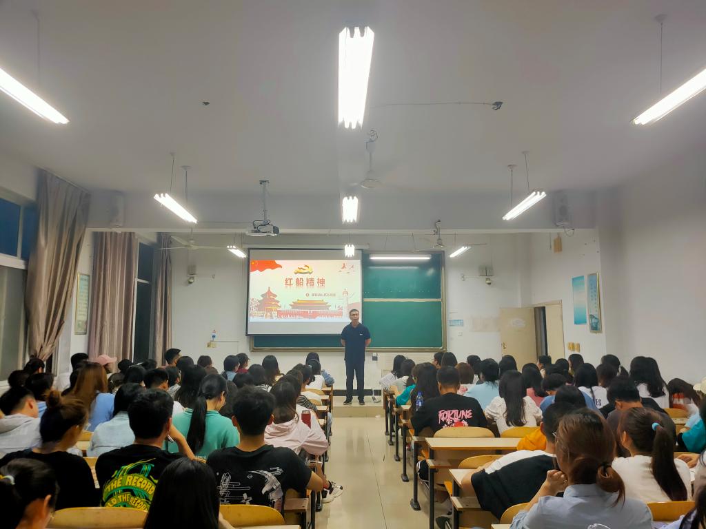 苏老师从弘扬“红船精神”走在时代前列、“红船精神”党的先进性之源、“红船精神”对党的先进性建设具有重要意义、在新的实践中继承和弘扬“红船精神”四个方面向同学们全面且透彻的阐述了红船精神科学内涵,告诫大家在新时期应该继承和发扬红船精神。同学们认真记录,仔细听讲,在老师的指引下领略党的红色精神。