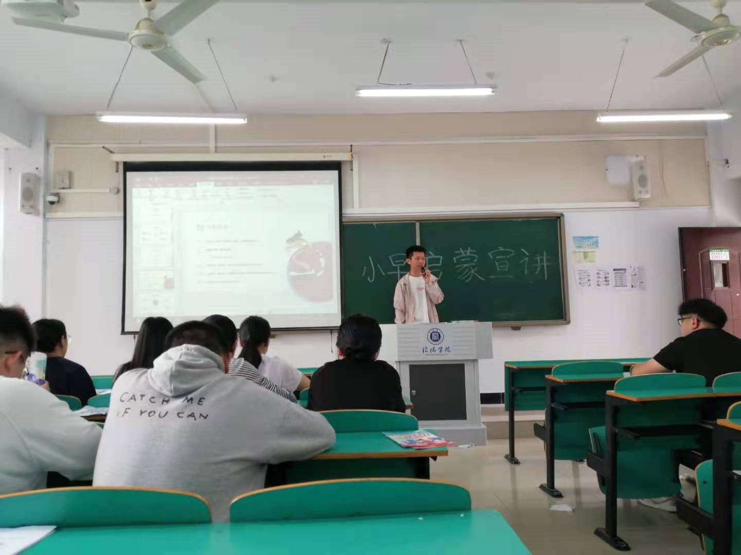会议伊始,宣讲人通过课件向同学们详细说明什么是线上教育,以及线上教育的发展前景。宣讲人结合PPT为同学们介绍了公司的背景、招聘岗位及薪资福利等具体内容,并用视频展示了工作内容及成果,以及本次招聘岗位的要求。最后宣讲人对学生疑问进行解答,并对意向学生进行现场面试。