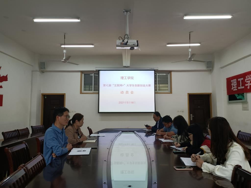 5月18日下午,理工学院在理工楼201会议室召开了第七届“互联网+”大学生创新创业大赛动员会。出席本次会议的有理工学院党总支副书记张红梅,学工秘书杨晓杰,各教研室主任,辅导员郑亚茹。