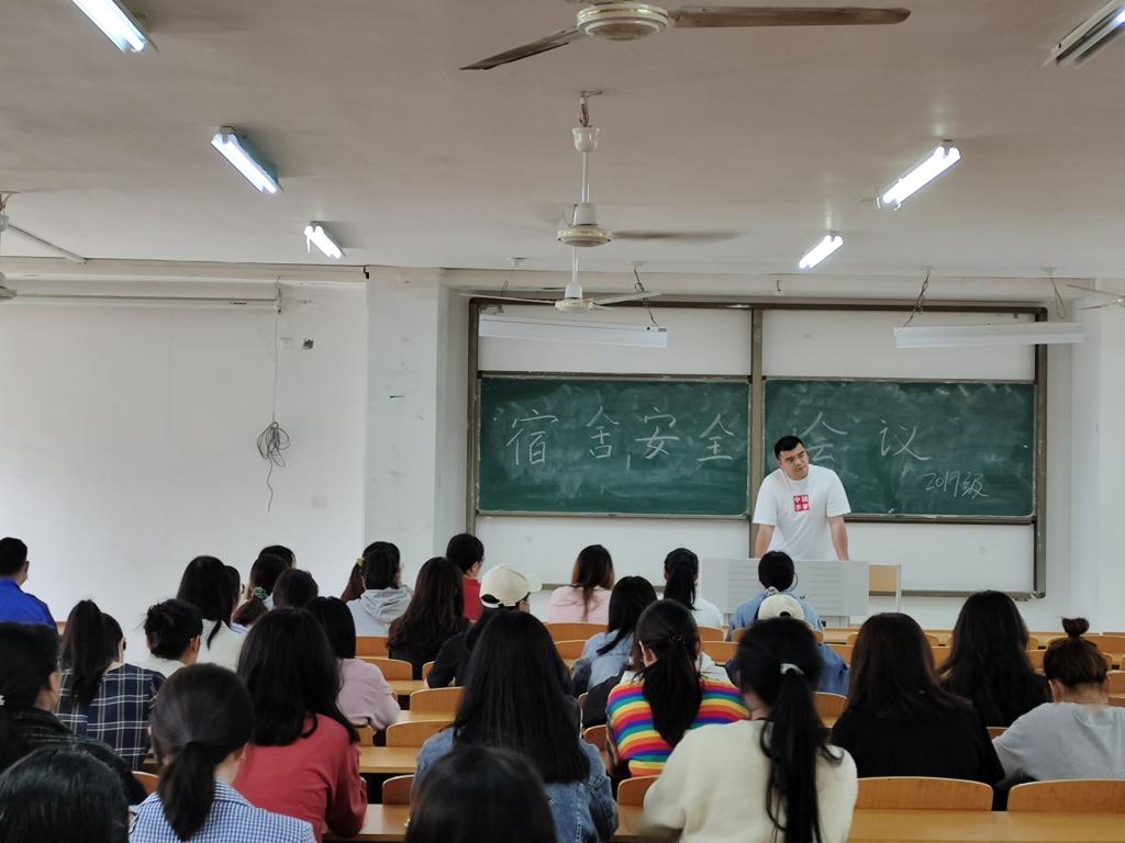 为有力保证毕业生安全、有序地度过在校的最后一段时光。5月18日下午三点,我院在人文楼410教室为毕业生召开以“安全、顺利、文明毕业”为主题的会议,文学院学工秘书徐远东老师、辅导员兼学院公寓管理负责人何军华老师以及2017级全体寝室长参加此次会议,会议由徐远东主持。