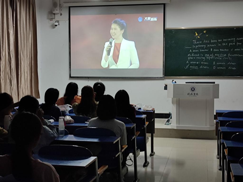 学史明理,学史增信,学史崇德,学史力行,5月21日晚上,外国语学院在外语楼组织2020级同学收看教育厅“百年党史青年说”现场展演暨颁奖仪式。