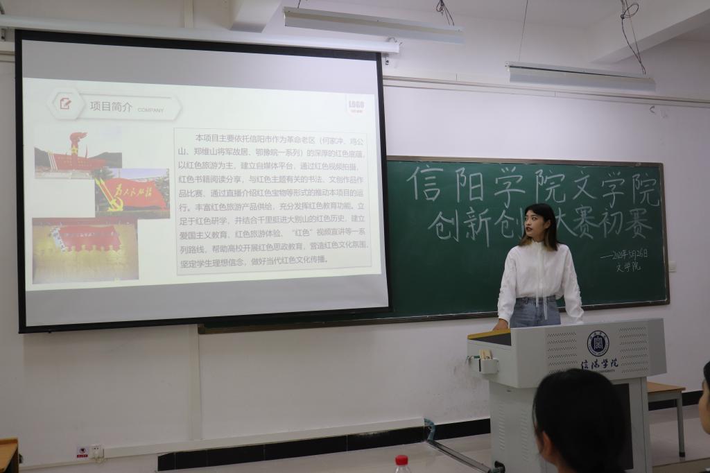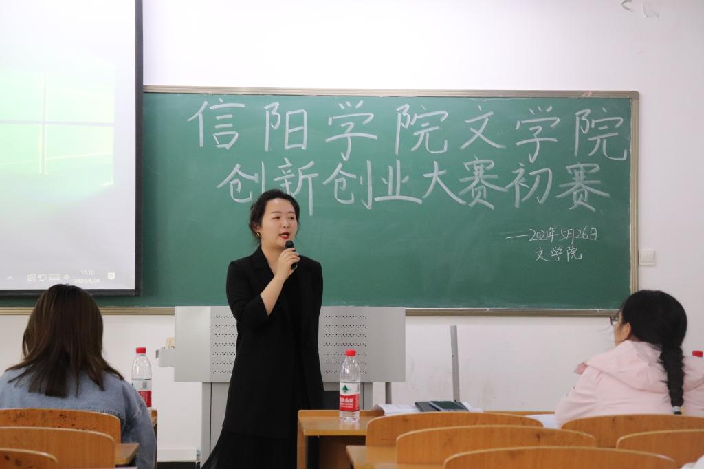 大众创业、万众创新是时代的主旋律,为推动高等教育高质量发展,加快培养创新创业,引导大学生了解创业知识,提高创业能力,激发当代大学生的创业热情,信阳学院文学院第七届创新创业大赛于5月26日下午两点半在人文楼319教室拉开帷幕,陶思宇、王悦、段艳婷、冯乐、冯叶五位老师担任本次比赛评委,比赛由杭宜永同学主持。