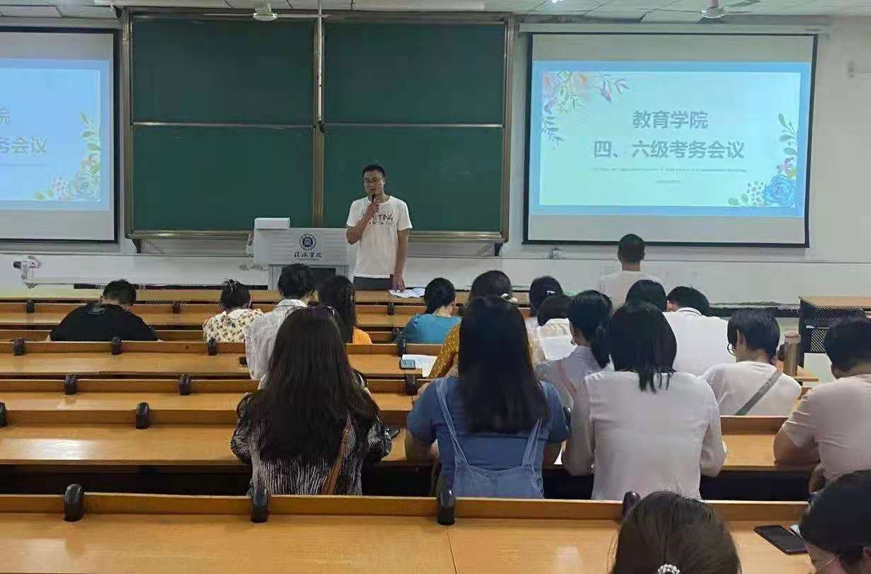 6月8日下午,教育学院在社科楼112召开2021年上半年全国大学英语四六级考试监考培训会,学院教学干事徐西良、教务员崔浩以及全体监考教师参加了会议。