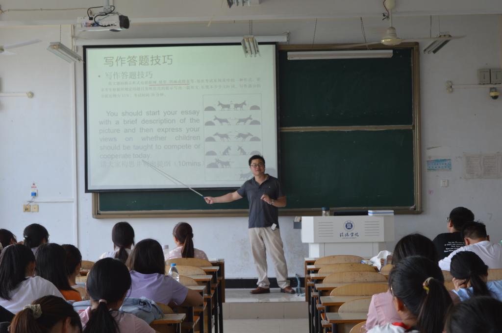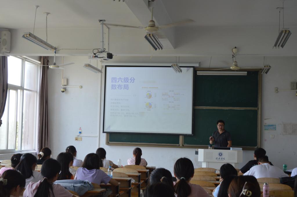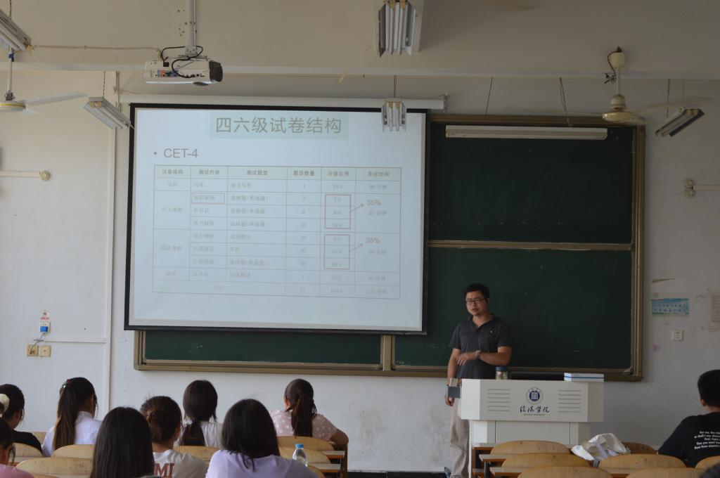 为提高大学生英语四、六级考试实战能力,外国语学院于6月7日下午在外语楼405教室举行了大学生英语四六级题型解析及答题技巧专题讲座,外国语学院各年级备考学生积极参加了此次活动。本次讲座由王斐老师主讲。