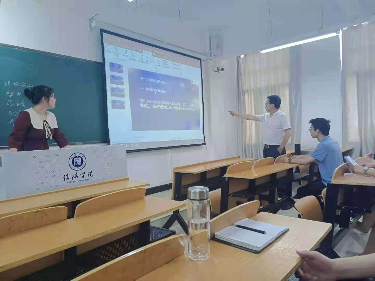 2021年6月8日下午2:20,为提高青年教师的教学水平,社会科学学院法学教研室分组在社科楼展开教学素质提升活动,由周占生、陈光和刘卫国三位教授分别带领张奎、胡晶等法学教研室教师聆听何慧、程俊丽、李若君、刘君辉等青年教师的课程。