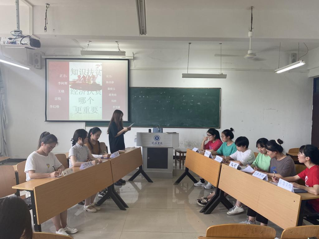 为培养学生的辩证思维和合作沟通能力,6月8日和15日下午,小学教育教研室在社科楼512教室开展了《教育哲学》课程课内实践活动。19级小学教育本科1班、2班、3班分别开展了三场辩论赛,以此作为《教育哲学》这门课程的课内实践课。此次辩论赛吸引了同学们的广泛关注。