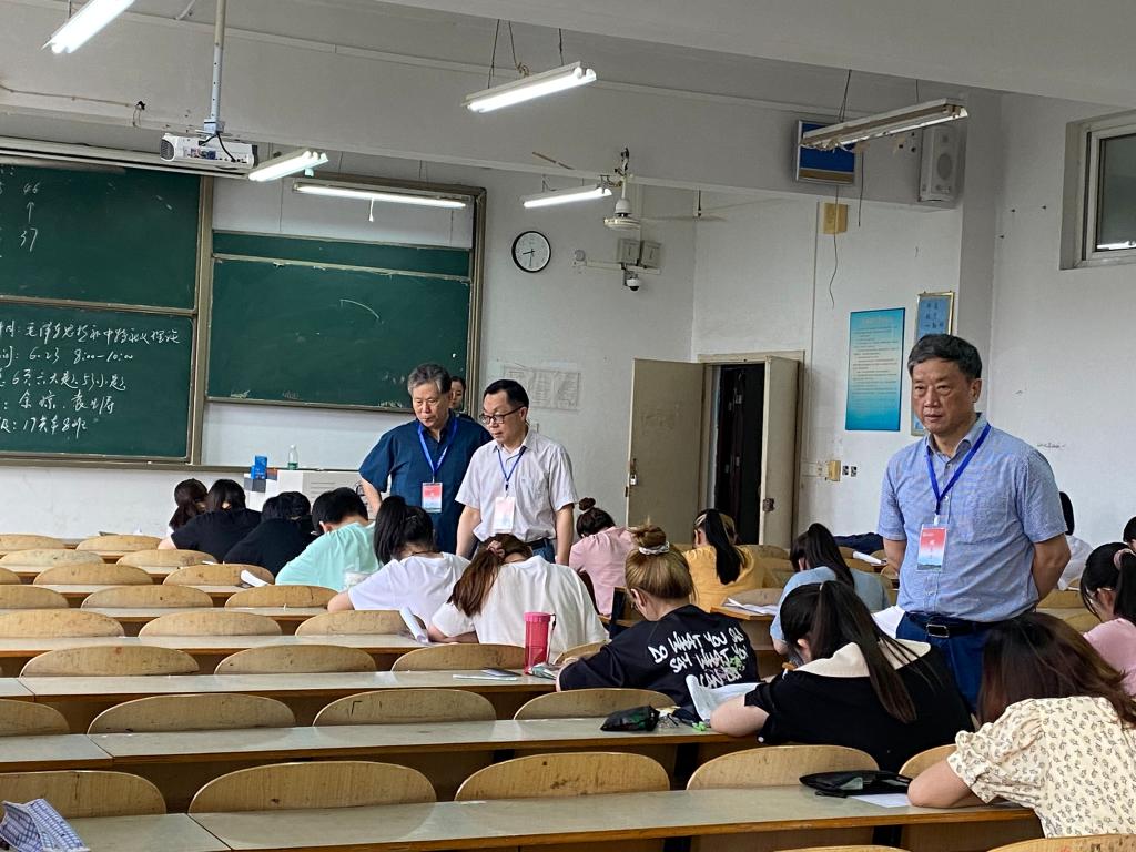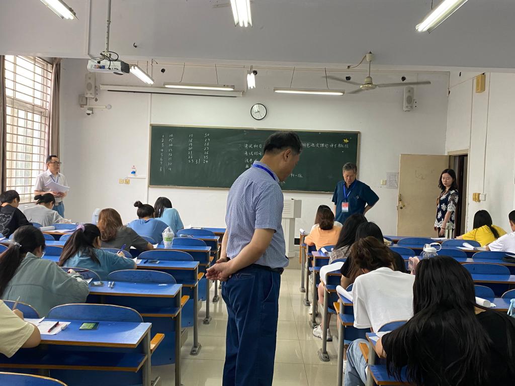为严肃考风考纪,确保考试规范、有序进行,6月23日上午,学校战略发展咨询委员会主任熊健民、校长办公室干事孟祥龙、教学质量监控中心主任 岳中奇、外国语学院院长罗德喜、外国语学院党总支副书记程娇炎、教学副院长李静等班子成员深入到外国语学院考试现场进行巡考,对考试组织、考场秩序、监考教师履职及学生考纪等情况进行逐一巡查。