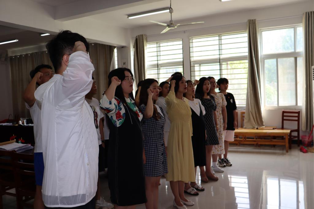 最后,在徐沛东领誓下,全体党员重温入党誓词。接着党总支副书记赵佳对期末学生工作作了安排和部署。