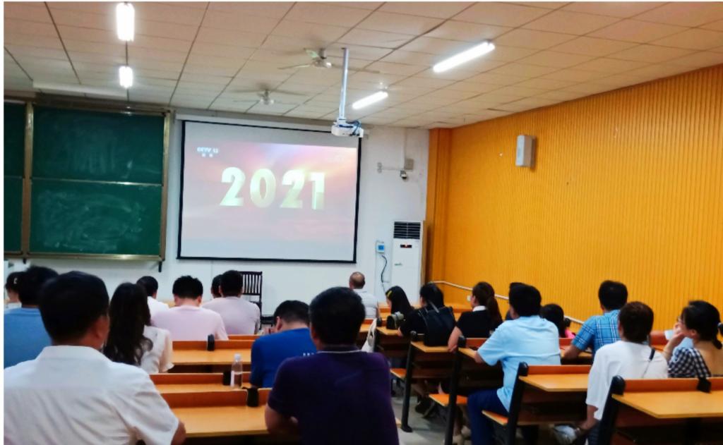 7月1日上午,庆祝中国共产党成立100周年大会在北京天安门广场隆重举行,中共中央总书记、国家主席、中央军委主席习近平发表重要讲话。社会科学学院全体教师在社科楼209教室集中收看大会盛况,共庆中国共产党百年华诞。