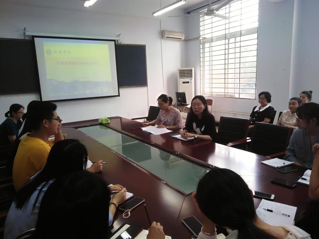 7月10日上午,外国语学院在外语楼110会议室召开评优评先工作会议,党总支副书记程娇炎、学工干事刘阳红及外国语学院全体辅导员参加。会议由刘阳红主持。