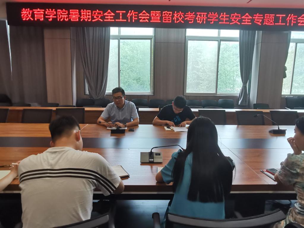 为了切实做好学生暑期学生管理工作,7月9日下午教育学院在社科楼109会议室召开暑期安全工作会暨留校考研学生安全专题工作会,教育学院党总支书记张甲楠,学工干事郝昊及全体辅导员参加此次会议,会议由郝昊主持。