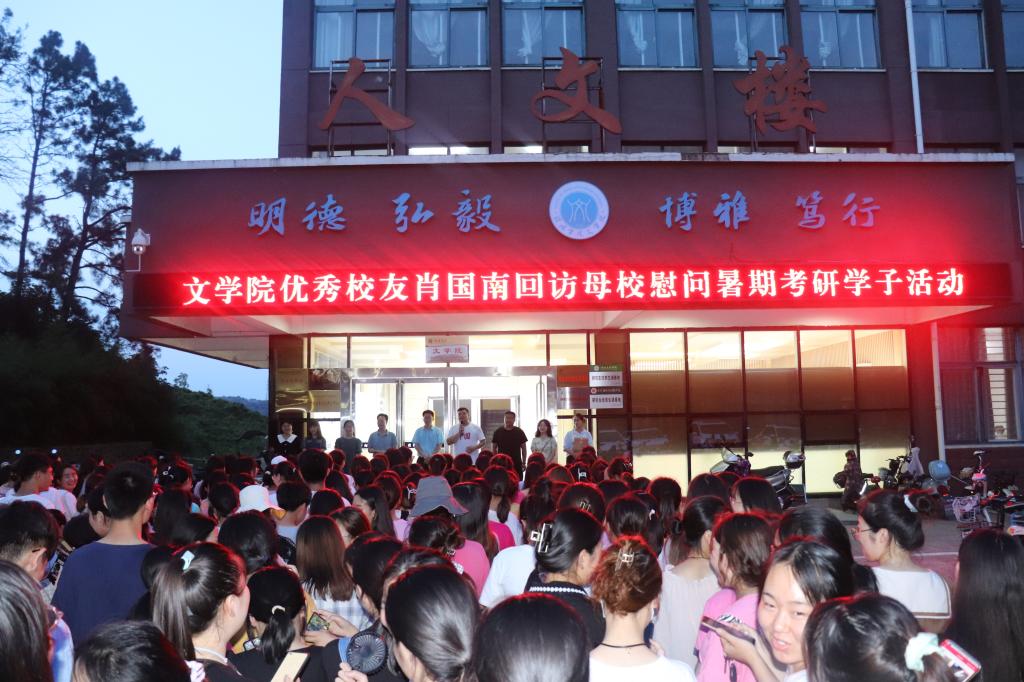 肖国南同志表达了毕业以来对母校深深的眷念之情和对学弟学妹们的美好祝福,他祝愿母校和文学院能够越办越好,2022届考研学子们蟾宫摘桂、研路必胜。