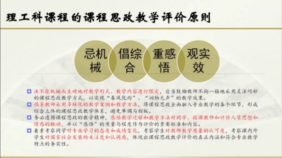 本系列讲座紧扣“课程思政”实施的总体原则、专业建设、教学团队、课程建设、教学评价、大中小一体化等关键环节,以具体的实践分享华东师范大学课程思政经验和成果,分享打造“优化模式、分类施策、拓展途径”三位一体的课程思政工作体系的历程,营造“探究、合作、分享、励志”的教研文化,推动各高校课程思政建设的互学互鉴。会上,华东师范大学副校长戴立益围绕课程思政实践创新的途径做了报告,他指出教师要把握新时代人才培养的历史使命,不辜负人们的期待。教育学部副主任柯政从教育学的视角总结了课程思政的实施要点,并指出了部分老师对课程思政的理解还存在误区,也提出了相应的解决办法。