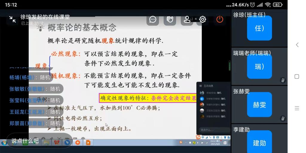 为进一步保障疫情防控期间线上教学质量,近日,数学与统计学院院长俞迎达,党总支副书记刘颖方,教学副院长张聪,教学督导刘宏、杨保华,各教研室主任进入到各门课的线上课堂,对线上教学课程的资源准备情况、学生到课情况及课堂教学效果等方面进行了检查。