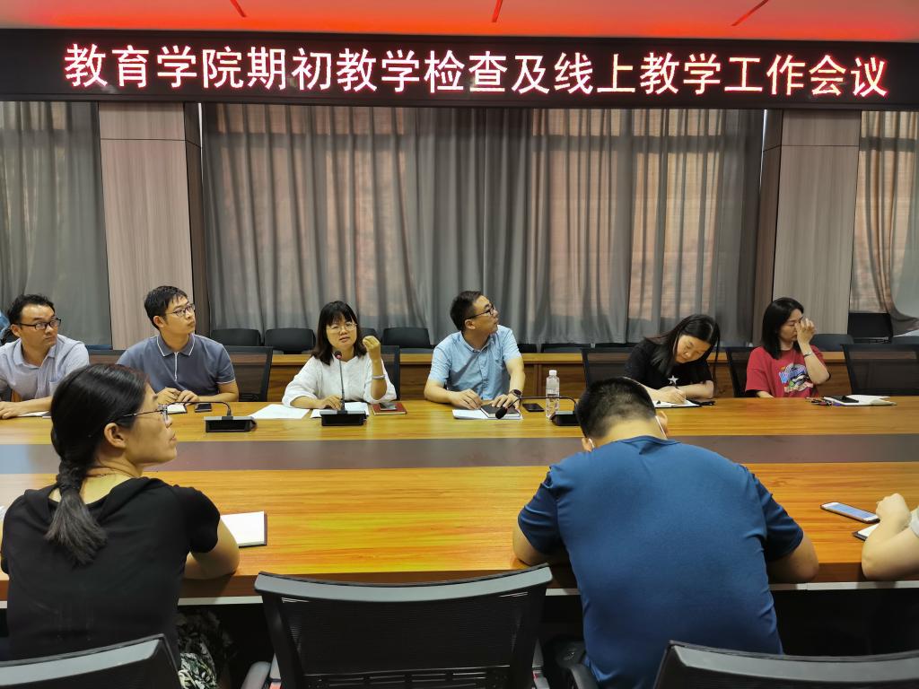 为保障学院教学工作高效有序开展,9月16日下午,教育学院在社科楼109会议室召开了期初教学工作要点督查及线上督导听课反馈会,党总支书记张甲楠、教学副院长郑娇娇、行政干事白鹭、教学办各成员及各教研室主任参加了此次会议。