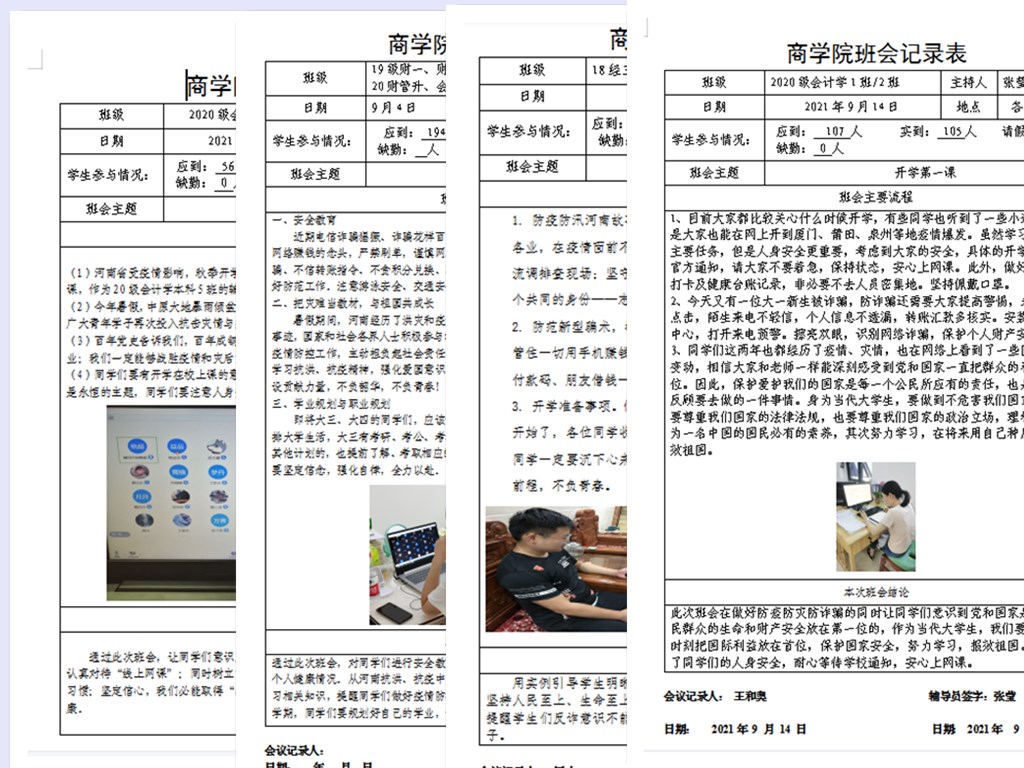 持续跟踪,确保实效。截至9月15日,商学院现有的11名辅导员均已开授了“2021年秋季开学第一课”。接下来,辅导员们将按照学院要求做到“安全问题重点提醒、线上班会定时召开、突出问题实时关注、特殊情况及时上报”,巩固“开学第一课”内容的同时,做好学生疫情防控,持续推进新生入学教育的各方面工作,确保学生“平安入校、入校平安”。