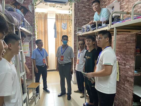 9月25日下午,大数据与人工智能学院院长邬长安、党总支副书记毛凤翔、教学副院长黄俊一行带领学工干事及全体辅导员老师走访2021级新生宿舍。