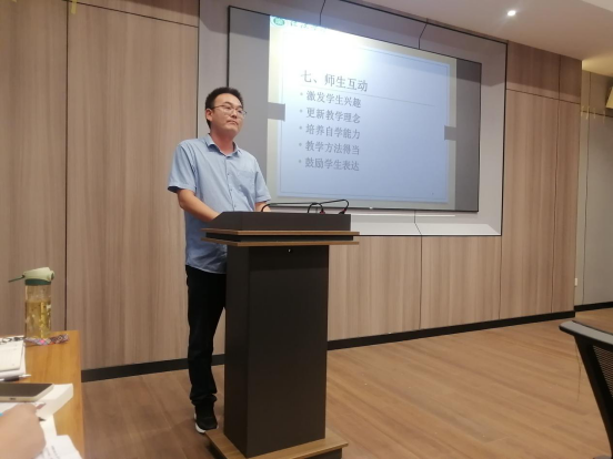 本次邀请“第二届河南省本科高校教师课堂教学创新大赛”一等奖获得者张奎老师主讲。他与大家分享了题为《站好三尺讲台,讲好育人好课》的讲座。他从教学态度、教学方法、教学素养、教学能力及教学技巧方面深入浅出的向各位青年教师讲授了如何上好一节课的精髓,大家受益匪浅。