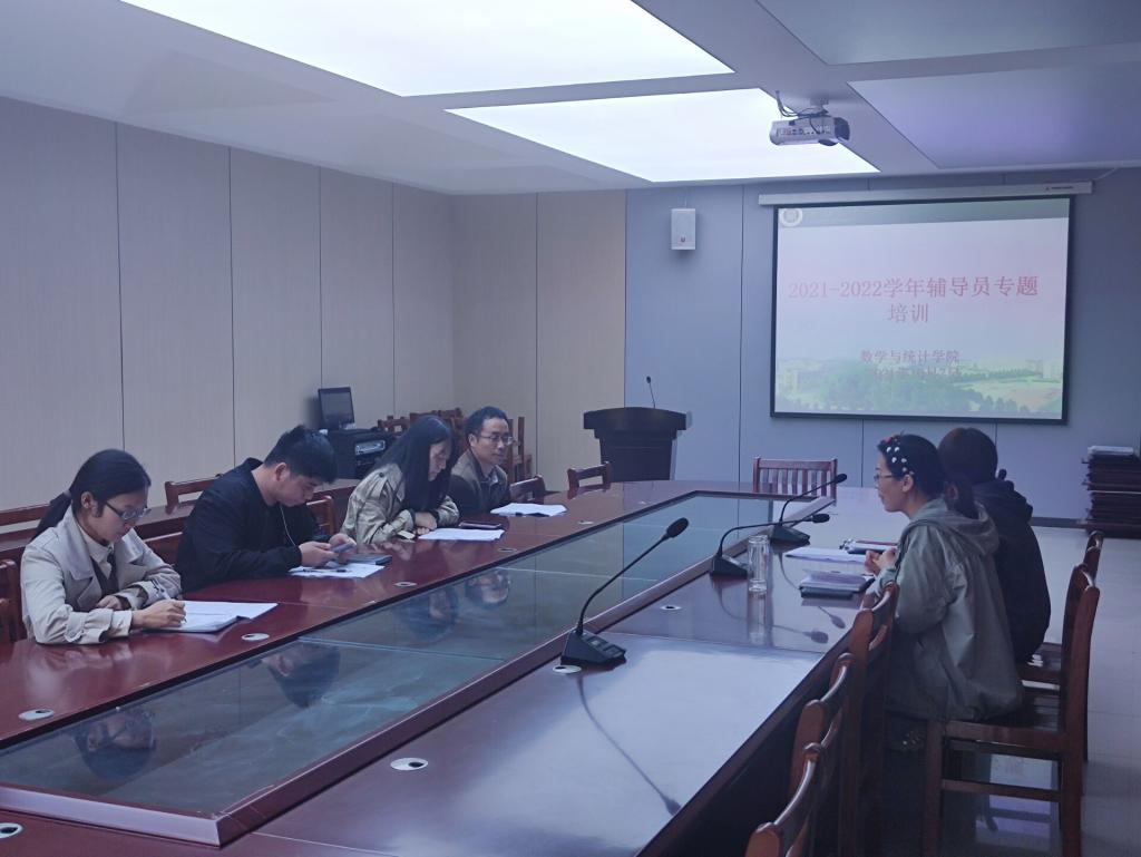 为全面贯彻落实全国、全省高校思想政治工作会议和全国教育大会精神,提升学院辅导员队伍的业务水平,促进辅导员队伍专业化建设,10月7日下午,数学与统计学院在数计楼407召开了2021-2022学年辅导员专题培训会。党总支副书记刘颖方、学工干事田媛及全体辅导员参加培训会。会议由田媛主持。