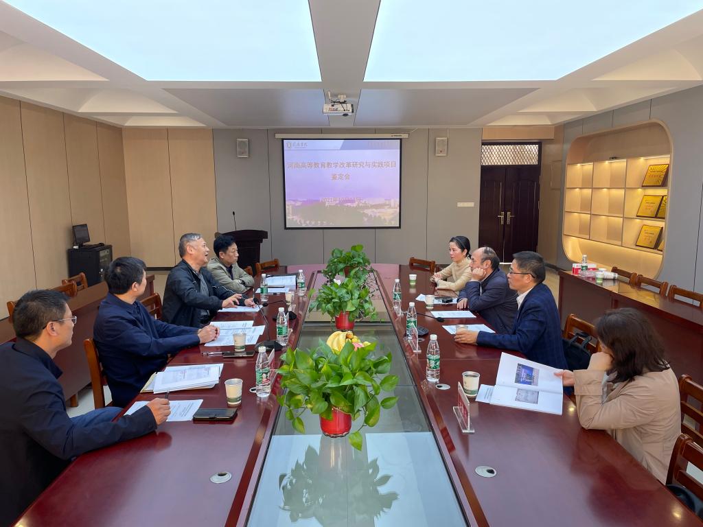 项目鉴定由信阳师范学院副校长余本海任组长,鉴定专家组由河南大学、信阳师范学院、南阳师范学院等专家组成。专家组听取了项目主持人李彩娟的汇报,认真审阅、实地查看了相关资料,并对项目研究的内容进行了质询,最后经过讨论、评议,一致同意予以通过鉴定结项。评审专家组表示,该项目能够紧密结合学校办学特色,采用线上+线下的混合教学模式开展教学,取得了良好效果,具有一定的推广价值。同时,各评审专家对项目研究中存在的问题以及发展方向等提出了指导性建议。