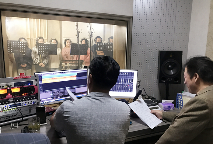 席文太莅校期间,学院班子成员进行了热情接待。席文太同王凯歌深入指导江云鹏等师生进行了歌曲《信阳学院进行曲》录制工作。