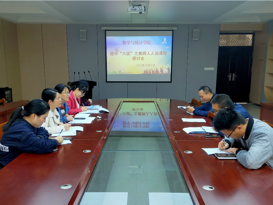 为进一步深入开展迎评促建工作,熟悉迎评流程,根据学校《关于开展迎评工作“六说”活动的通知》要求,10月15日下午,数学与统计学院开展了迎评”六说”活动之教师人人说课程研讨活动。学院班子成员、教研室主任及部分青年教师参加了活动。