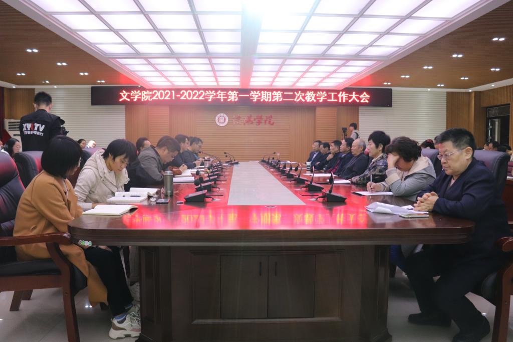 10月19日下午四点,我院在人文楼208会议室召开了文学院2021-2022学年第一学期第二次教学工作大会。文学院院全体教师参加了会议。会议由党总支书记李赟主持。