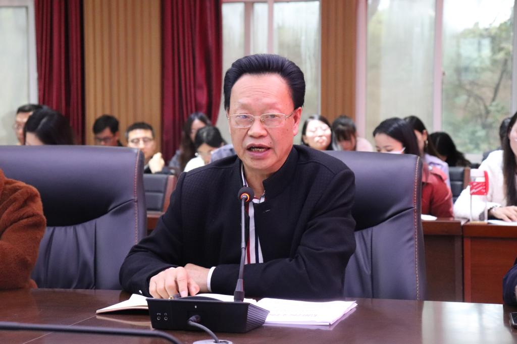 党总支书记李赟强调了“六说”工作,对前期的工作进行了肯定,对下一步工作做了要求。要求全体教职工认真学习王北生校长“六说”讲座,把文学院的“六说”工作做到位。同时指出各位教职工要站在全局高度上积极配合学院工作,共同迎接这次的诊断评估。