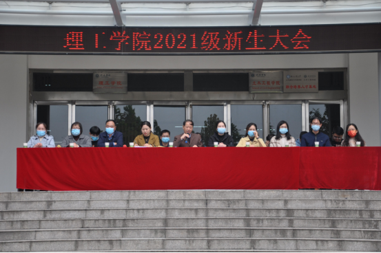 10月22日中午,理工学院在理工楼前广场隆重召开理工学院2021级新生大会。理工学院院长肖生发、党总支副书记张红梅、教学副院长李晓严、学院各教研室主任、全体行政人员、全体辅导员以及全体2021级全体新生到场参会。张红梅主持了大会。